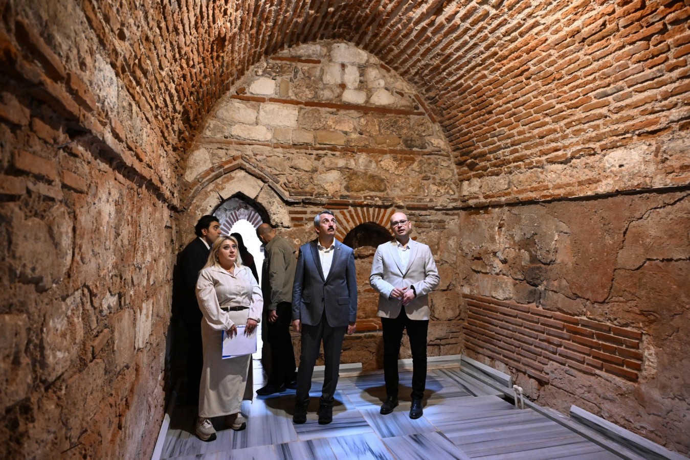 Vali Yunus Sezer, ihya çalışmaları devam eden Gazimihal Hamamı’nda incelemelerde bulunarak yürütülen çalışmalar hakkında bilgi aldı. Hamamı gezen Vali Sezer, "Aslına uygun şekilde restore edilen ve işlev kazandırılarak yeniden şehrin kültürel ve sosyal hayatına dâhil edilecek olan 600 yıllık hamam, Edirne’mizin tarihine yeniden hayat verecek" diye konuştu.