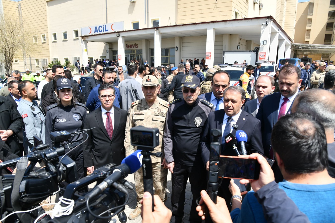 Olay yerine giden Vali Şimşek, incelemelerinin ardından açıklama yaptı. Vali Şıldak, "Bugün saat 09.30 sularında Siverek ilçemizde bulunan Ahmet Koyuncu Mesleki ve Teknik Anadolu Lisesinde okulun eski öğrencisi olan 2007 doğumlu Ö.K. adlı kişi tarafından gerçekleştirilen silahlı saldırı sonucunda maalesef 10 öğrencimiz, 4 öğretmenimiz, 1 polis memurumuz ve 1 kantin işletmecisi vatandaşımız olmak üzere 16 kişi yaralandı. 5 yaralımızın durumunun orta derecede riskli olarak değerlendirilmesi üzerine il merkezindeki hastanelere sevki gerçekleştirilmiştir. Pompalı silah ile hedef gözetmeksizin ateş ederek saldırıyı gerçekleştiren fail okulun içerisinde aynı silahı kullanarak intihar etti. Olayın aydınlatılması için başlatılan adli soruşturmanın yanı sıra olayın nedenlerinin bütün yönleriyle açığa kavuşturulması amacıyla kapsamlı olarak idari soruşturma başlatılmıştır. Yaralılarımıza acil şifalar diliyor, eğitim camiamıza ve bütün vatandaşlarımıza geçmiş olsun dileklerimi iletiyorum" ifadelerini kullandı.