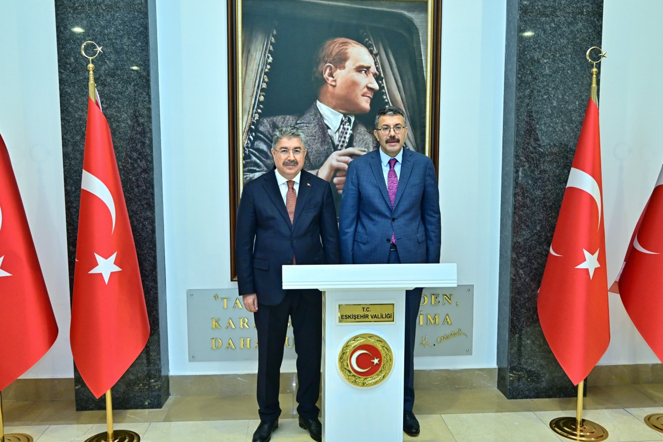 Çeşitli programlara katılmak üzere Eskişehir’e giden İçişleri Bakan Yardımcısı Ali Çelik, Vali Dr. Erdinç Yılmaz’ı makamında ziyaret etti. Valiliğe gelişi sırasında Vali Dr. Erdinç Yılmaz, Vali Yardımcıları, İl Jandarma Komutanı, İl Emniyet Müdürü ve diğer ilgililer tarafından karşılanan Ali Çelik, ziyaret anısına Valilik Şeref Defteri’ni imzaladı. Ziyarette, Eskişehir’de yürütülen kamu hizmetleri, güvenlik, yerel yönetim çalışmaları ve şehirde devam eden projelere ilişkin değerlendirmelerde bulunuldu.