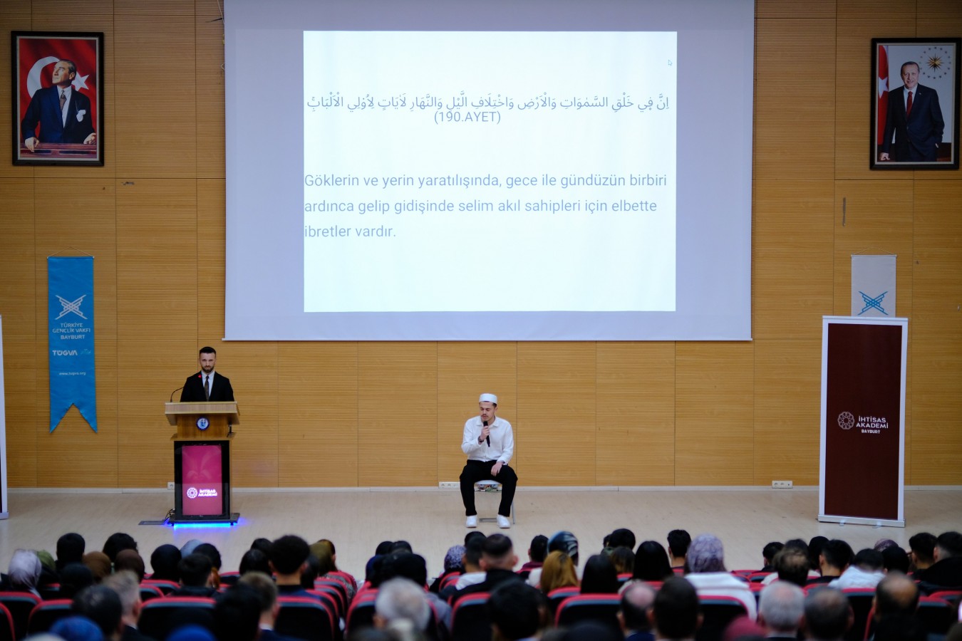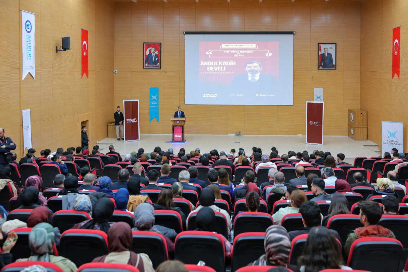 Bayburt Valisi Mustafa Eldivan, Türkiye Gençlik Vakfı Bayburt İl Temsilciliği tarafından düzenlenen “İhtisas Akademi 2026” programı kapsamında gerçekleştirilen “Yeni Dünya Ekonomisi ve Türkiye” başlıklı konferansa katıldı.