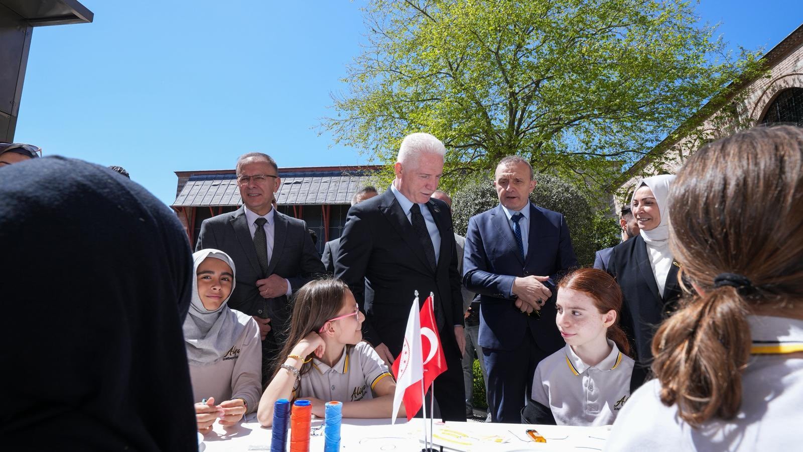 Müzede eğitim alan öğrenciler ve öğretmenlerle bir araya gelen İstanbul Valisi Davut Gül, yürütülen çalışmalar hakkında yetkililerden bilgi aldı.
