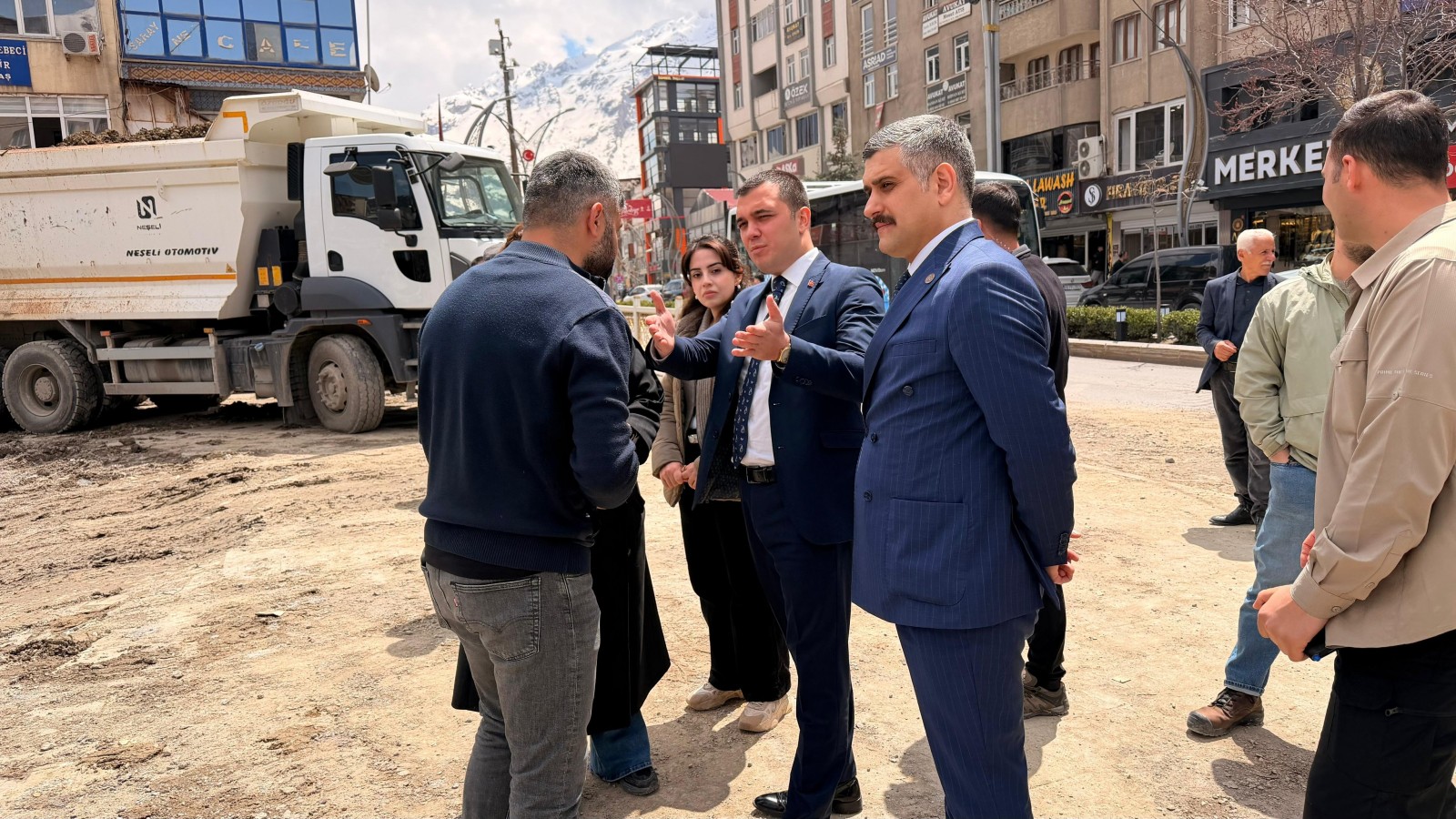 Hakkari Vali Yardımcısı ve İl Özel İdaresi Genel Sekreteri Cüneyt Zor, çarşı merkezinde yürütülen Kent Meydanı Projesi çalışmalarını yerinde inceledi. Eski belediye binasının yıkıldığı alanda başlatılan temel kazı çalışmalarını yerinde inceleyen Zor, projenin planlanan takvim doğrultusunda ilerlediğini belirtti.