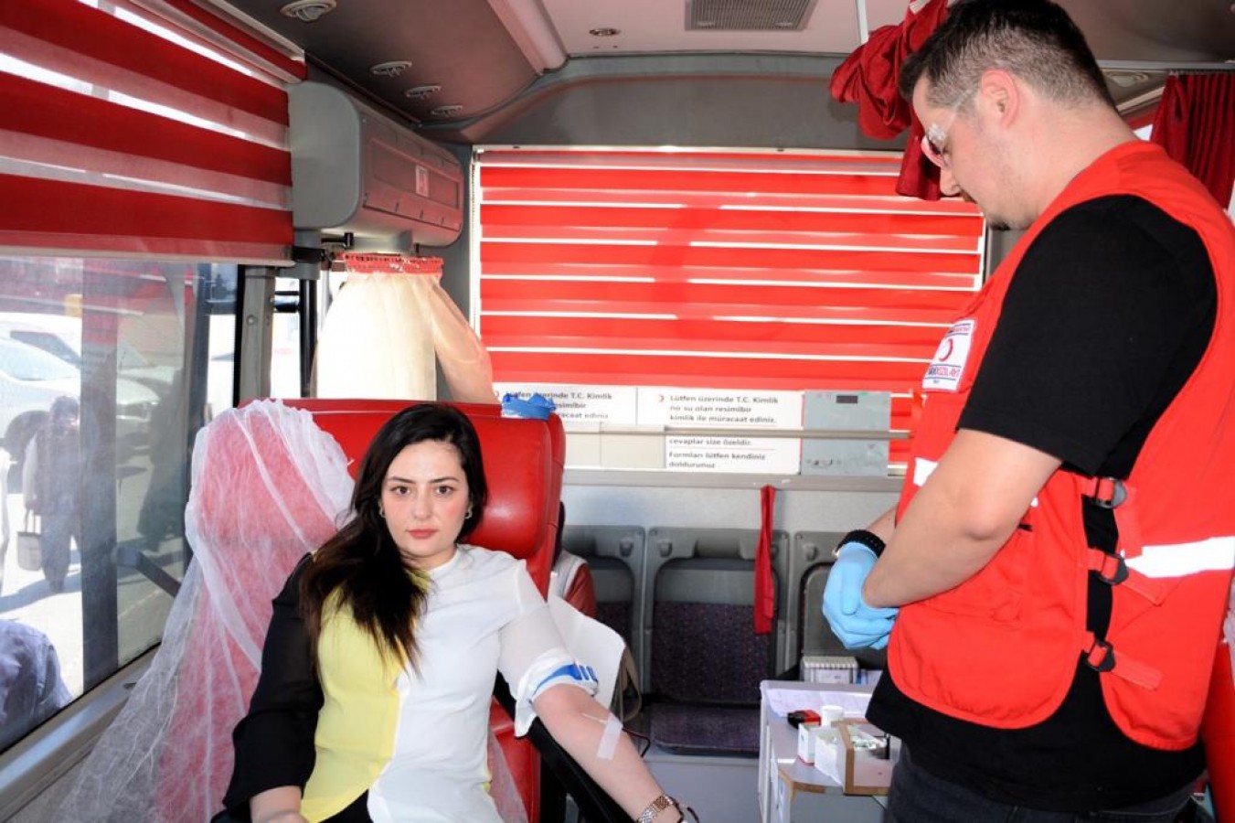 Cumhuriyet Meydanı'nda gerçekleşen Kızılay Kan Bağışı etkinliğine katılarak,