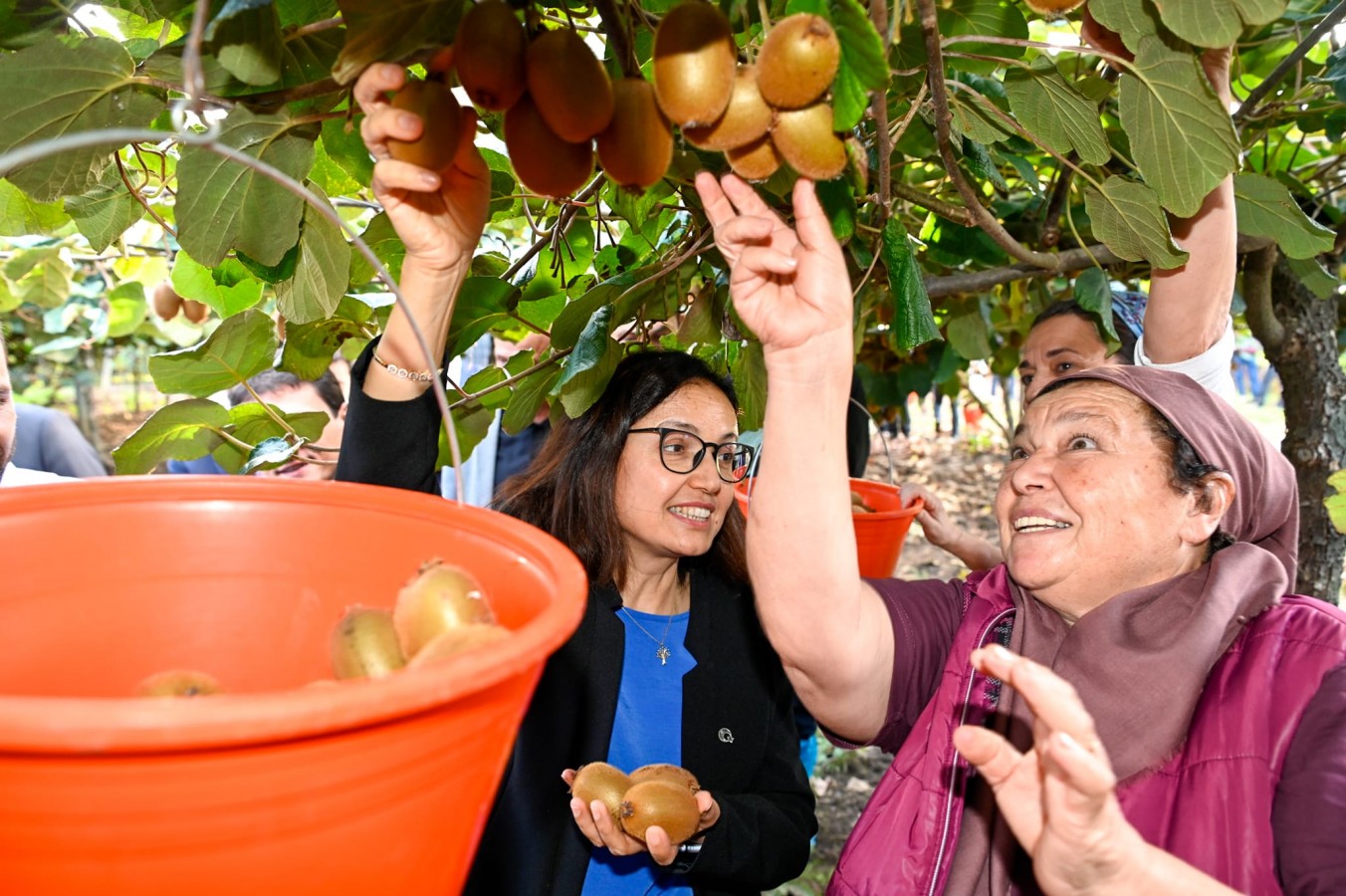 Müdürlüğü tarafından Sezer ve Oğuz Gezer'in kivi bahçesinde düzenlenen hasada Vali
