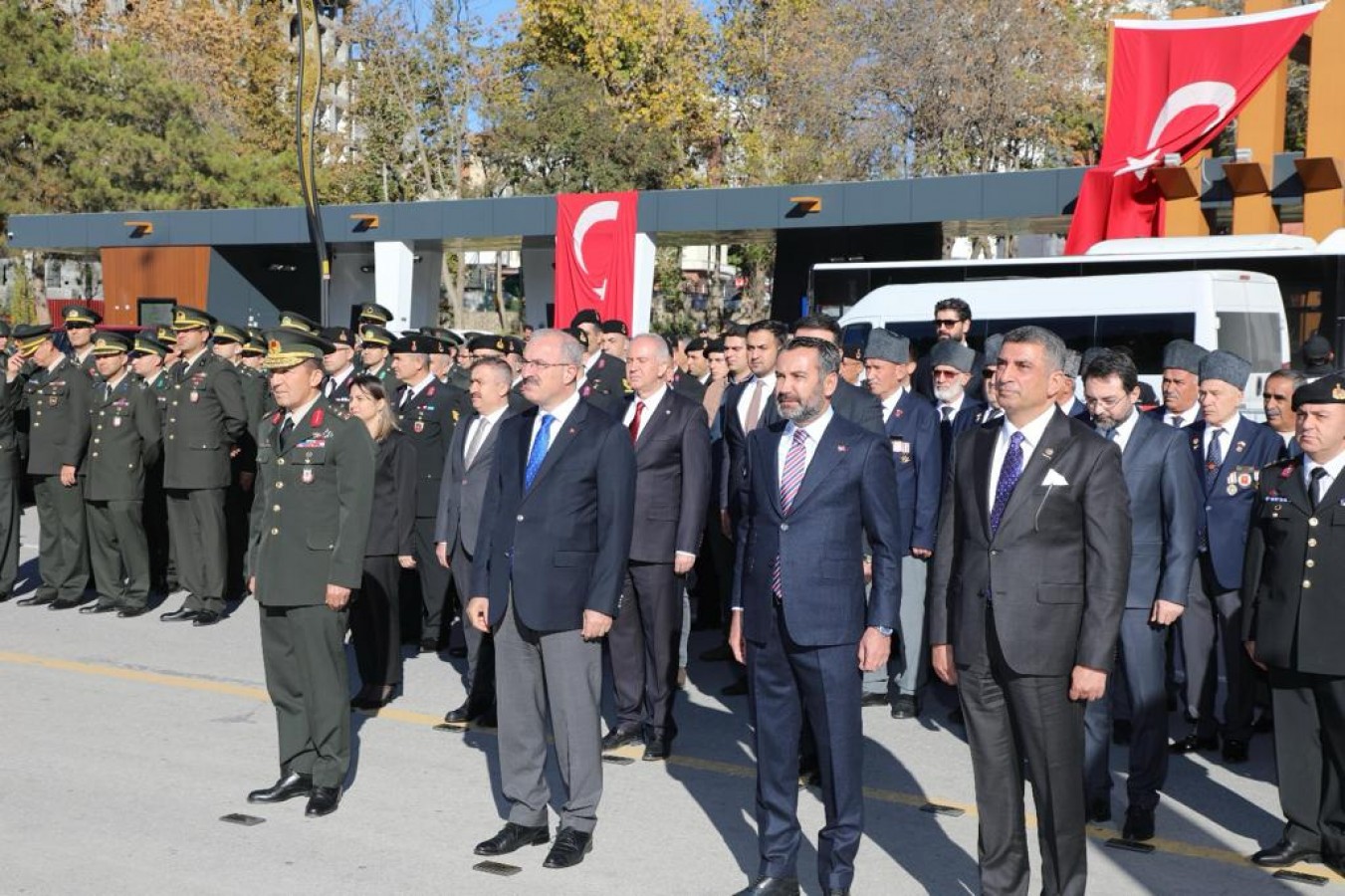 Öğretmenevi önünde düzenlenen törende, Vali Ömer Toraman, 8. Kolordu Komutanı Tümgeneral Tamer Atay ve Belediye Başkanı Şahin Şerifoğulları Atatürk Anıtı'na çelenk sundu. Törende, saygı duruşunda bulunuldu, İstiklal Marşı okundu.