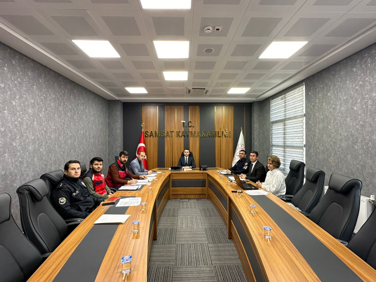 İçişleri Bakanlığı, Milli Eğitim Bakanlığı, Aile ve Sosyal Hizmetler Bakanlığı ve Türkiye Belediyeler Birliği arasında imzalanan Çocukların Eğitim Süreçlerinin Güvenliğine İlişkin Koruyucu ve Önleyici Hizmet ve Tedbirlerin Artırılmasına yönelik iş birliği protokolü kapsamında İlçe Yürütme Kurulu, Samsat Kaymakamı Süleyman Bakan'ın başkanlığında toplandı.