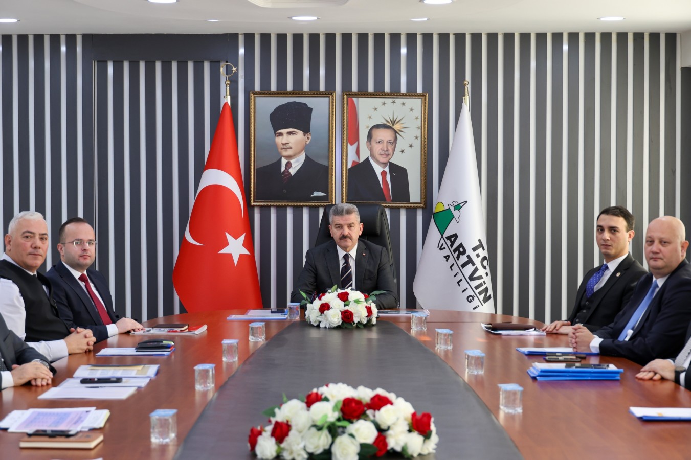 Artvin Valisi Dr. Turan Ergün başkanlığında Sarp Sınır Kapısı'ndaki TIR hizmet kapasitesinin durumu ve iyileştirilmesine yönelik çözüm önerilerinin ele alındığı değerlendirme toplantısı gerçekleştirildi. Toplantıya ilgili kurum yetkilileri katıldı.