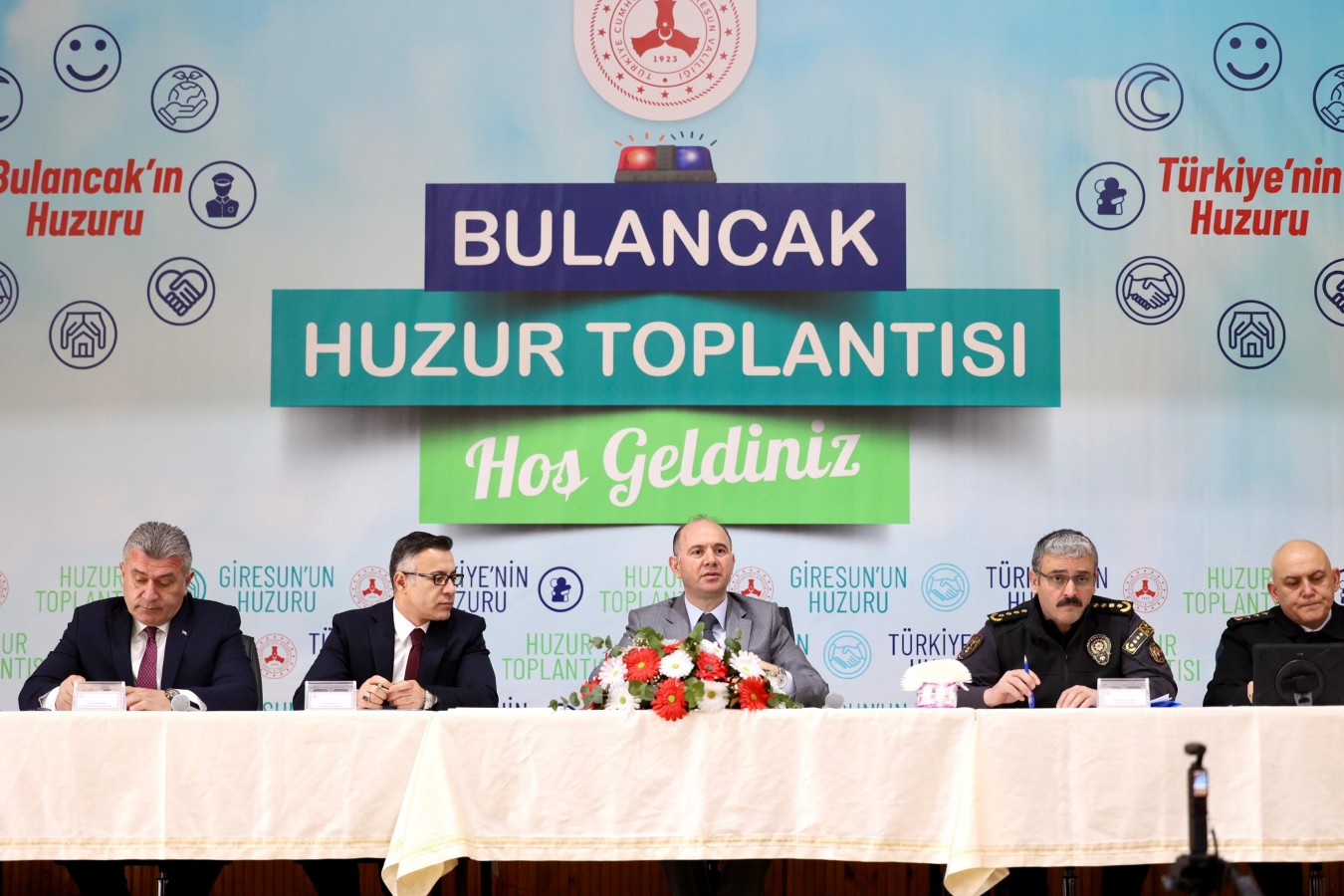 Giresun Valisi Mehmet Fatih Serdengeçti'nin başkanlığında Bulancak Huzur Toplantısı gerçekleştirildi. Toplantıda, ilçe genelinde yürütülen güvenlik hizmetlerine dair bilgiler paylaşıldı, mahalle muhtarları ve vatandaşların görüş, öneri ve talepleri dinlendi.