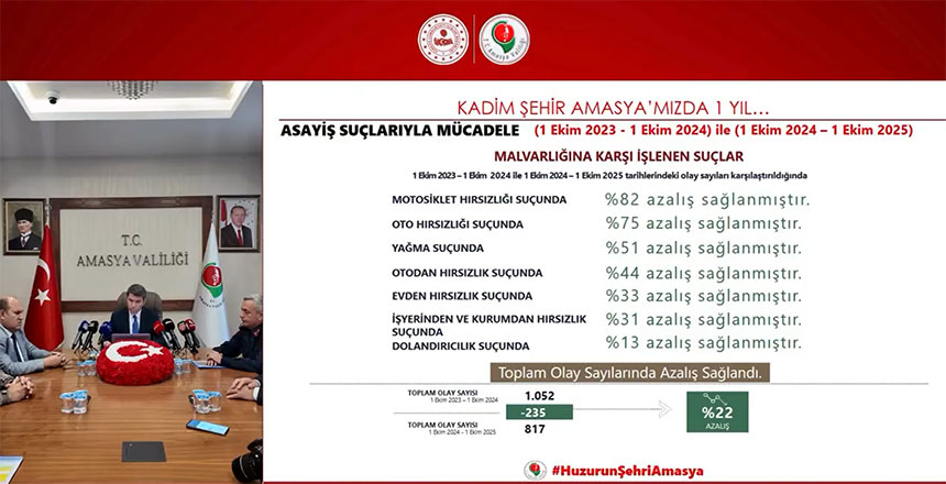 Vali Bakan, son bir yılda terör örgütlerine yönelik 111, organize suç örgütlerine yönelik ise 15 operasyon düzenlendiğini belirtti. Bu operasyonlarda 32 şüphelinin tutuklandığını, malvarlığına karşı işlenen suçlarda yüzde 22, kişilere karşı işlenen suçlarda ise yüzde 14 azalma sağlandığını aktardı. Siber suçlarla mücadele kapsamında 294 şahıs hakkında işlem yapıldığını, çeşitli suçlardan haklarında kesinleşmiş hapis cezası bulunan 825 kişinin yakalandığını ifade eden Bakan, bu oranın önceki döneme göre yüzde 14 arttığını söyledi. Uyuşturucu operasyonlarında ise bin 163 kişi gözaltına alınırken, 134 kişi tutuklandı. İnsan kaçakçılığıyla mücadelede düzenlenen 28 operasyonda 281 düzensiz göçmen yakalanırken, 50 insan taciri tutuklandı ve 33 araca el konuldu. Trafik denetimlerinde 1 milyon 156 bin araç kontrol edildi, bu sayede kazalarda hayatını kaybedenlerin oranı yüzde 42 azaldı.