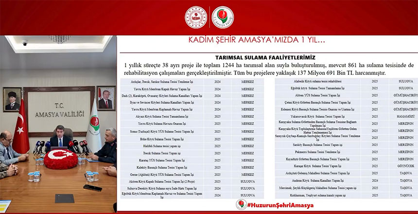 Vali Bakan konuşmasında, zirai don nedeniyle ürünleri zarar gören 13 bin 930 üreticiye 306 milyon 898 bin TL destekleme ödemesi yapılacağını da müjdeledi. Spor Toto Teşkilatı iş birliğiyle 618 milyon TL yatırım bedelli projeler kapsamında Merzifon ve Taşova’da spor salonları, gençlik merkezleri ve 15 sentetik futbol sahasının inşa edileceğini duyuran Vali Bakan, açıklamasını “Halka hizmet, Hakk’a hizmettir” anlayışıyla sürdürdüklerini belirterek tamamladı.