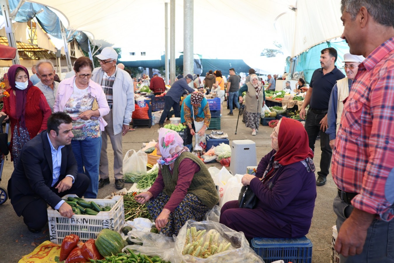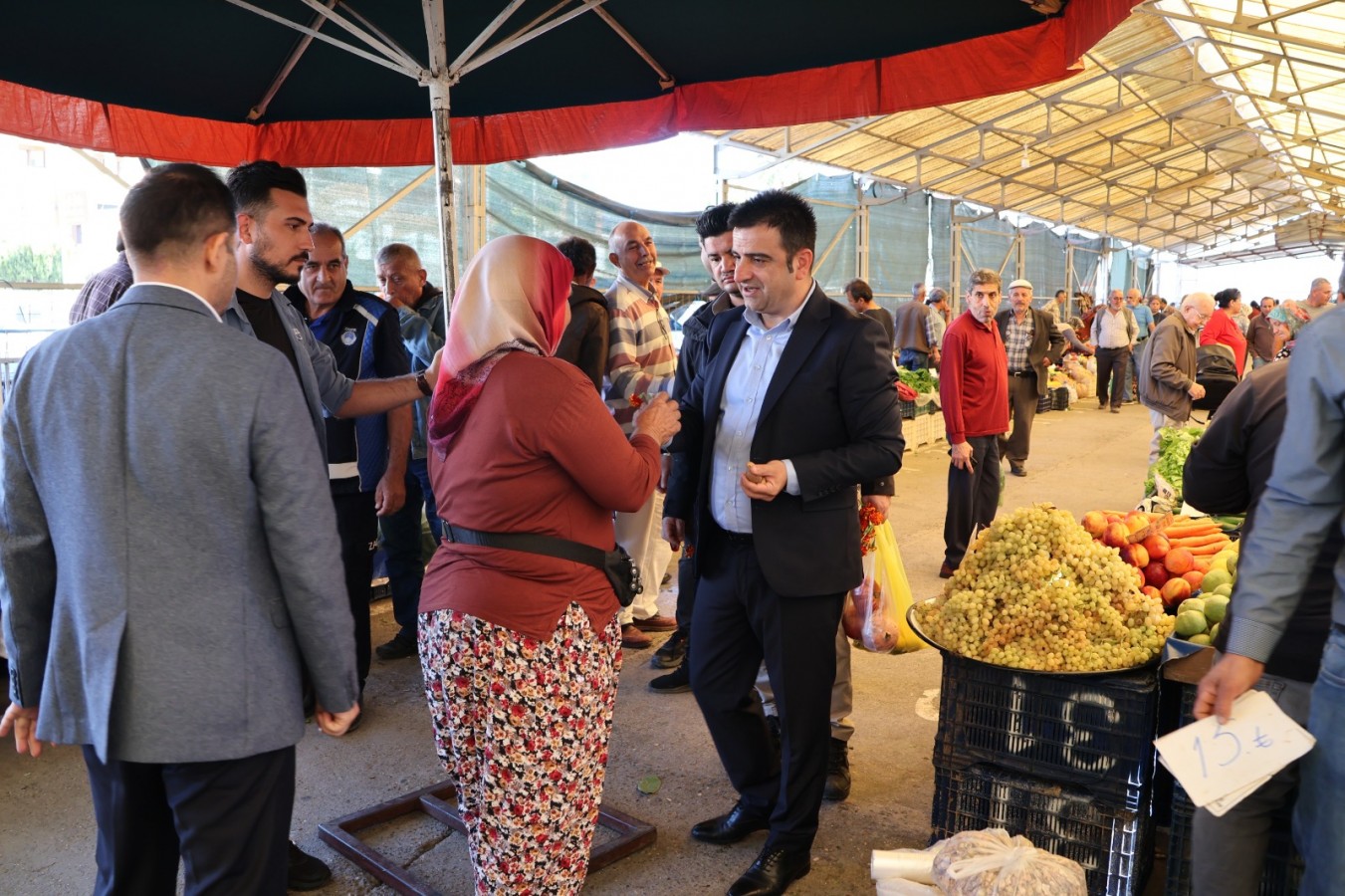 Pazar alanındaki genel durumu yerinde inceleyen Korkutata, düzen, temizlik ve ulaşım konularında yetkililerden bilgi aldı.
