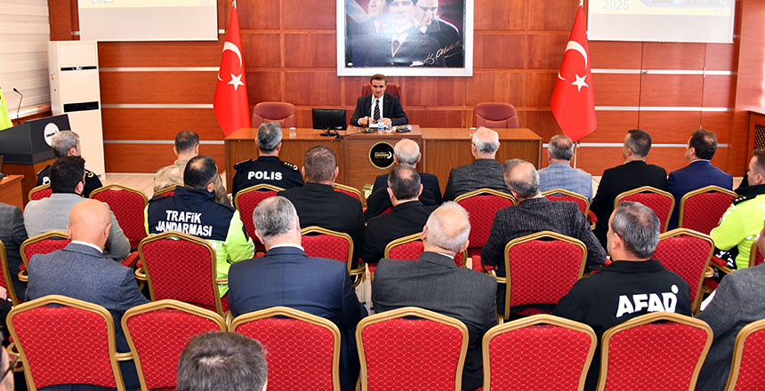 Toplantıda konuşan Vali Aydın Baruş, 2021-2030 yıllarını kapsayan Karayolu Trafik Güvenliği Strateji Belgesi ve Eylem Planı’nın Cumhurbaşkanlığı Genelgesi çerçevesinde yürütüldüğünü belirterek, “Bu plan doğrultusunda karayolu trafik güvenliğini sağlamak amacıyla 4 temel kurul oluşturuldu. Hedefimiz, 2030 yılına kadar trafik kazalarından kaynaklı can kayıplarını ciddi oranda azaltmak, 2050 yılına kadar ise sıfıra indirmektir” dedi.