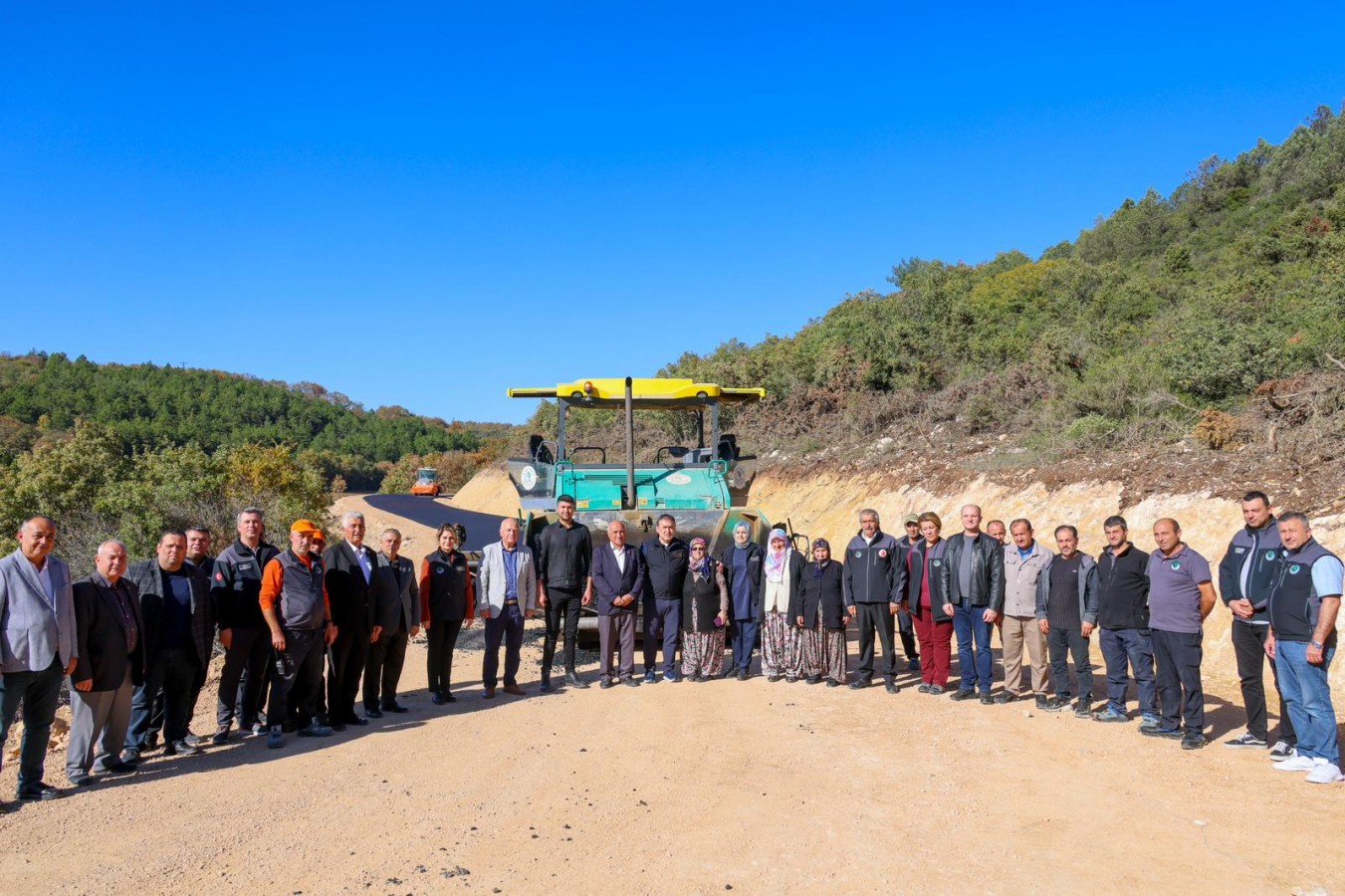 Köy yollarında devam eden asfalt çalışmalarını inceleyen Bilecik Valisi Faik Oktay Sözer, Sebahat Teyze ile birlikte finişerin başına geçerek, yolu asfaltladı....