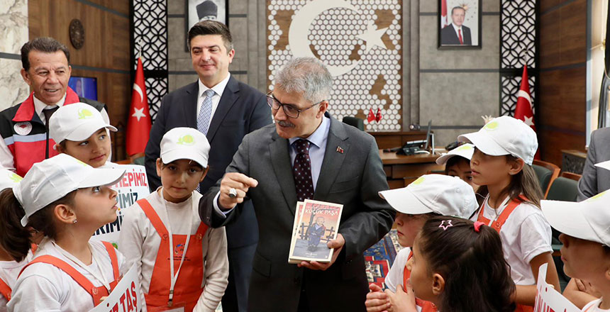 Vali Çelik, öğrencilerle yakından ilgilenerek onlarla bir süre sohbet etti. Görüşme sonunda çocuklara Niğde’nin yetiştirdiği önemli devlet adamı ve yazar Ebubekir Hâzım Tepeyran’ın “Küçük Paşa” adlı eserini hediye etti. Vali Çelik, çocuklara hitaben yaptığı konuşmada, “Okumak, düşünmek ve üretmek; hem bireysel hem toplumsal gelişimin anahtarıdır. Sizler, hem doğayı koruyacak hem de bilgiyle büyüyecek nesillersiniz” ifadelerini kullandı.