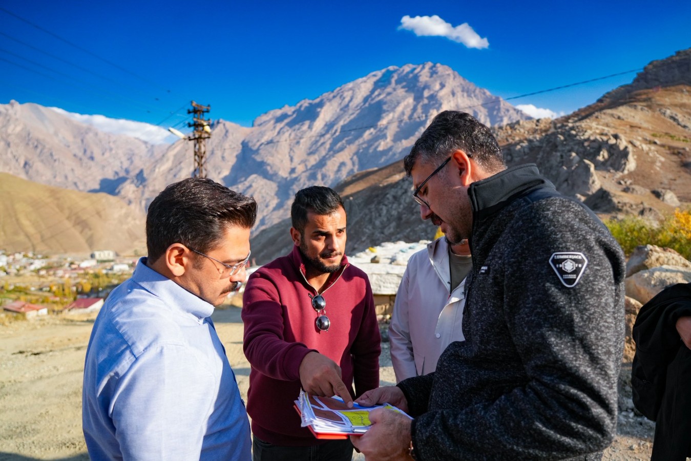 Hakkâri Valisi Ali Çelik, Vali Yardımcısı Tayyar Emre Mahmutoğlu ve beraberindeki heyetle birlikte Bağlar Mahallesi’nde yürütülen yol yapım çalışmalarını yerinde inceledi.