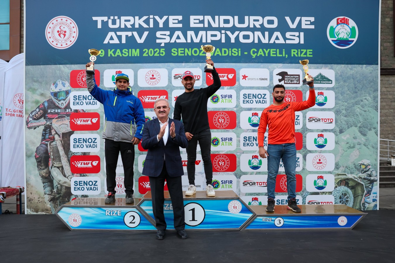 Sporcuları tebrik eden Vali Baydaş, "Türkiye Enduro ve ATV Şampiyonası Rize Etabı tamamlandı. Sporun ve doğanın şehri Rize, Senoz Vadisi’nin eşsiz parkurlarında heyecan dolu bir şampiyonaya ev sahipliği yaptı. Zorlu etaplarda üstün performans sergileyen tüm sporcularımızı tebrik ediyorum. Bu başarılı organizasyonda emeği geçen federasyon yetkililerine, sporcularımıza, görevli ekiplere ve misafirlerimize teşekkür ediyorum. Sporun şehri Rize, her branşta sporu ve sporcuyu desteklemeye devam edecek" ifadelerini kullandı.