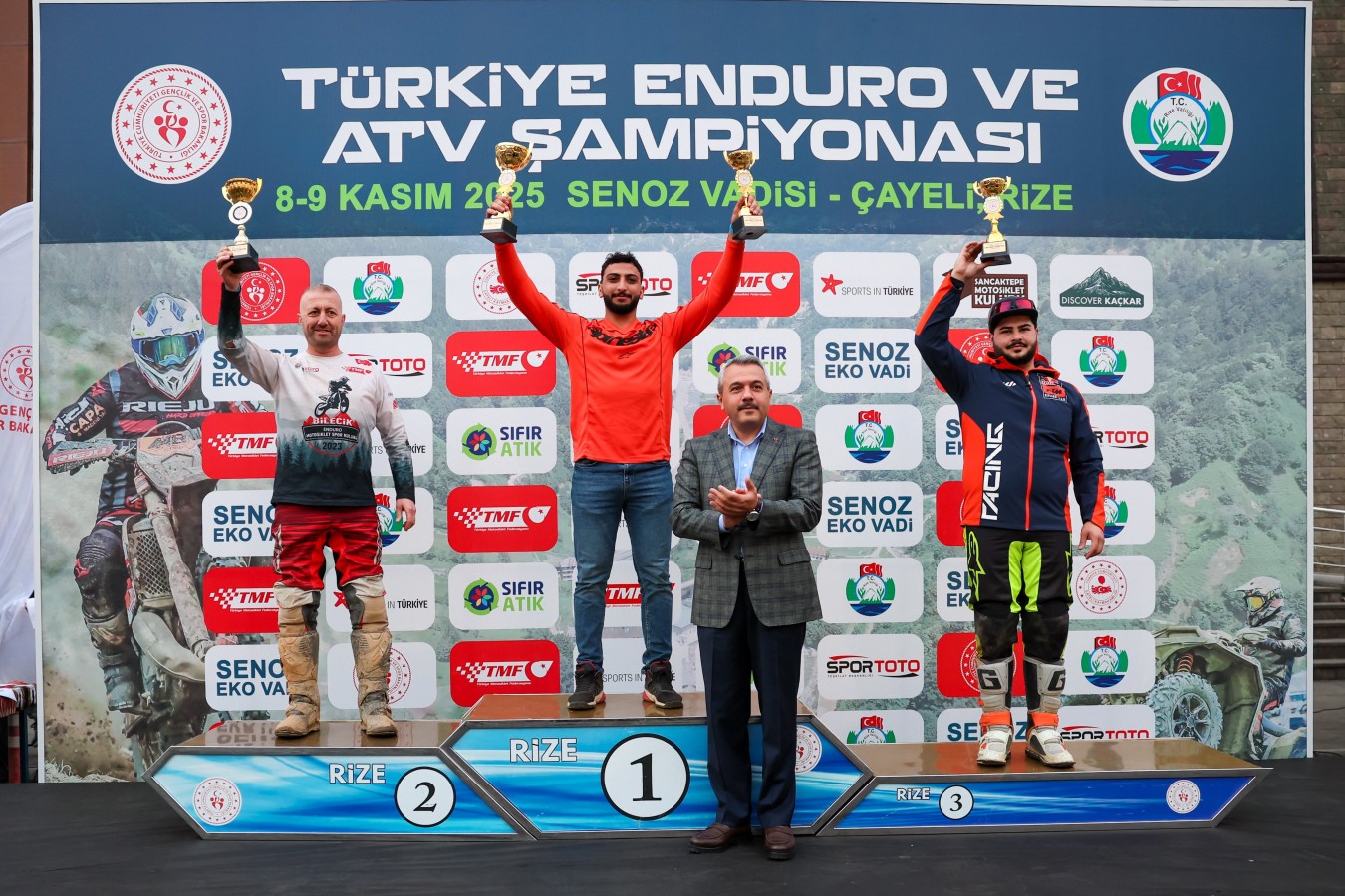 Rize’nin doğal güzellikleriyle ünlü Senoz Vadisi'nde iki gün boyunca süren Türkiye Enduro ve ATV Şampiyonası’nın ödül töreni yapıldı. Törende konuşan Vali İhsan Selim Baydaş, "Sporun ve doğanın şehri Rize, Senoz Vadisi’nin eşsiz parkurlarında heyecan dolu bir şampiyonaya ev sahipliği yaptı" dedi....