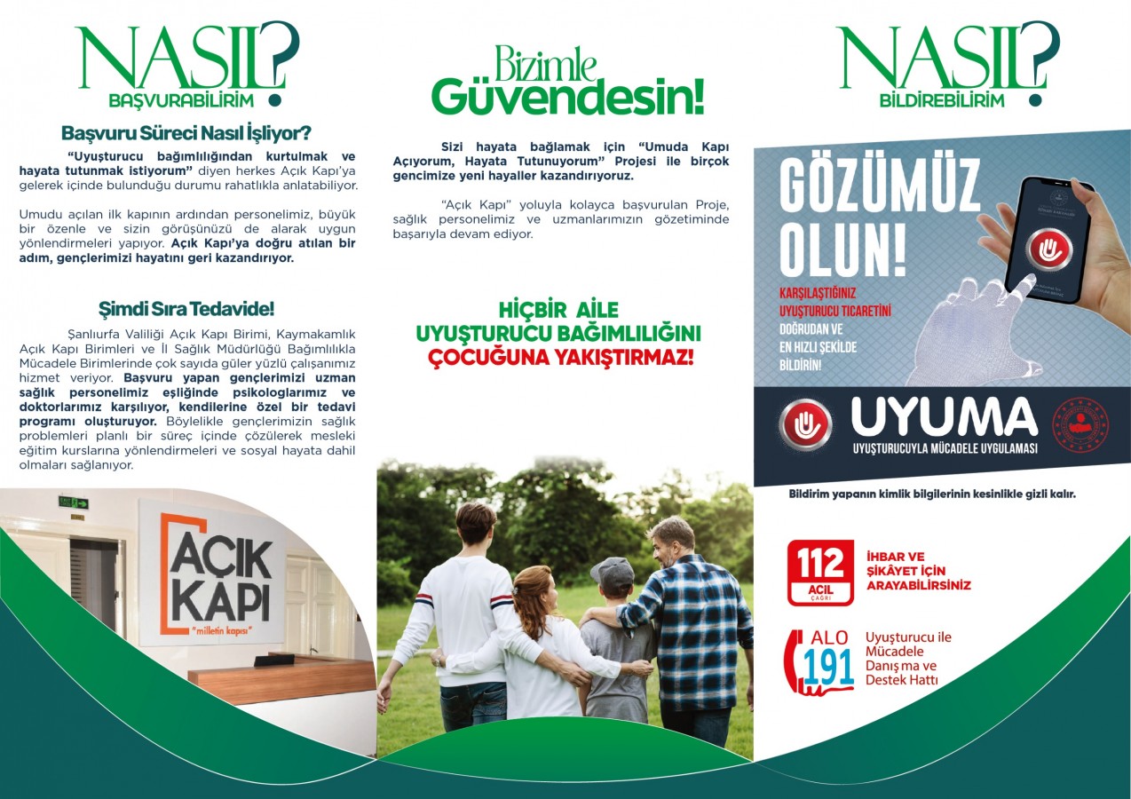 Şanlıurfa Valiliği tarafından yürütülen “Umuda Kapı Açıyorum, Hayata Tutunuyorum” projesi ve uyuşturucu ihbarları için geliştirilen UYUMA aplikasyonu ile önemli çalışmalar hayata geçirildi. Kent genelinde uyuşturucu ile mücadele kapsamında yürütülen iki geniş kapsamlı proje, başarılı sonuçlar vermeye başladı.