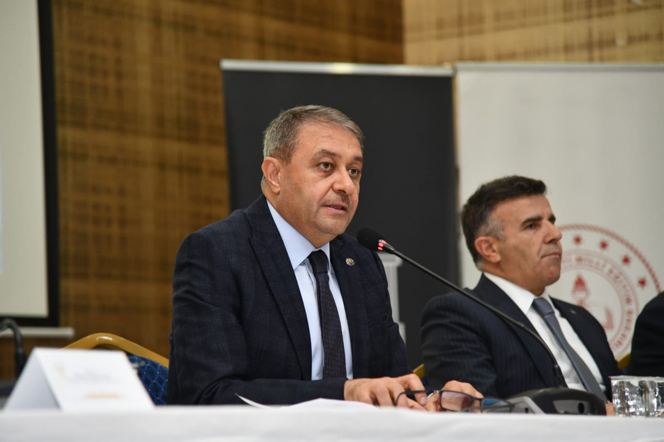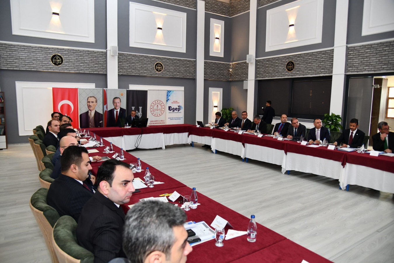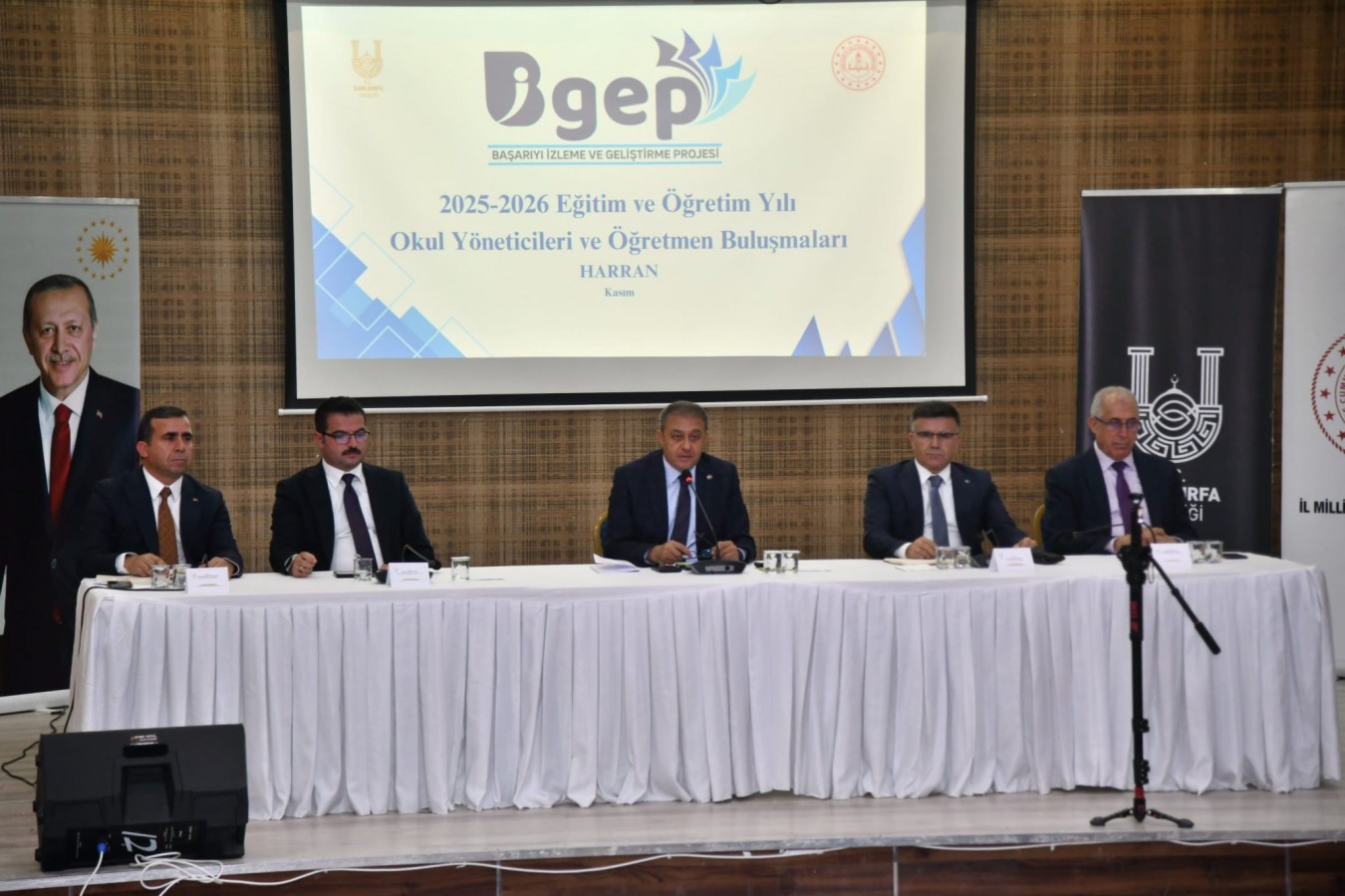 Harran Kümbet Otel'de yapılan toplantıya, 13 ilçe kaymakamı ve ilçe milli eğitim müdürleri katıldı. Başarıyı İzleme ve Geliştirme Projesi (BİGEP) kapsamında Şanlıurfa genelindeki eğitim çalışmalarını aylık olarak izleyerek ihtiyaçlara göre hızlı çözüm geliştirmeyi amaçlayan bir çalışma modeli ile eğitime yaklaştıklarını kaydeden Vali Hasan Şıldak, eğitim süreçleri, ihtiyaç duyulan alanlar, devam eden çalışmalar ve atılması gereken yeni adımları eğitim camiasıyla birlikte değerlendirdi.