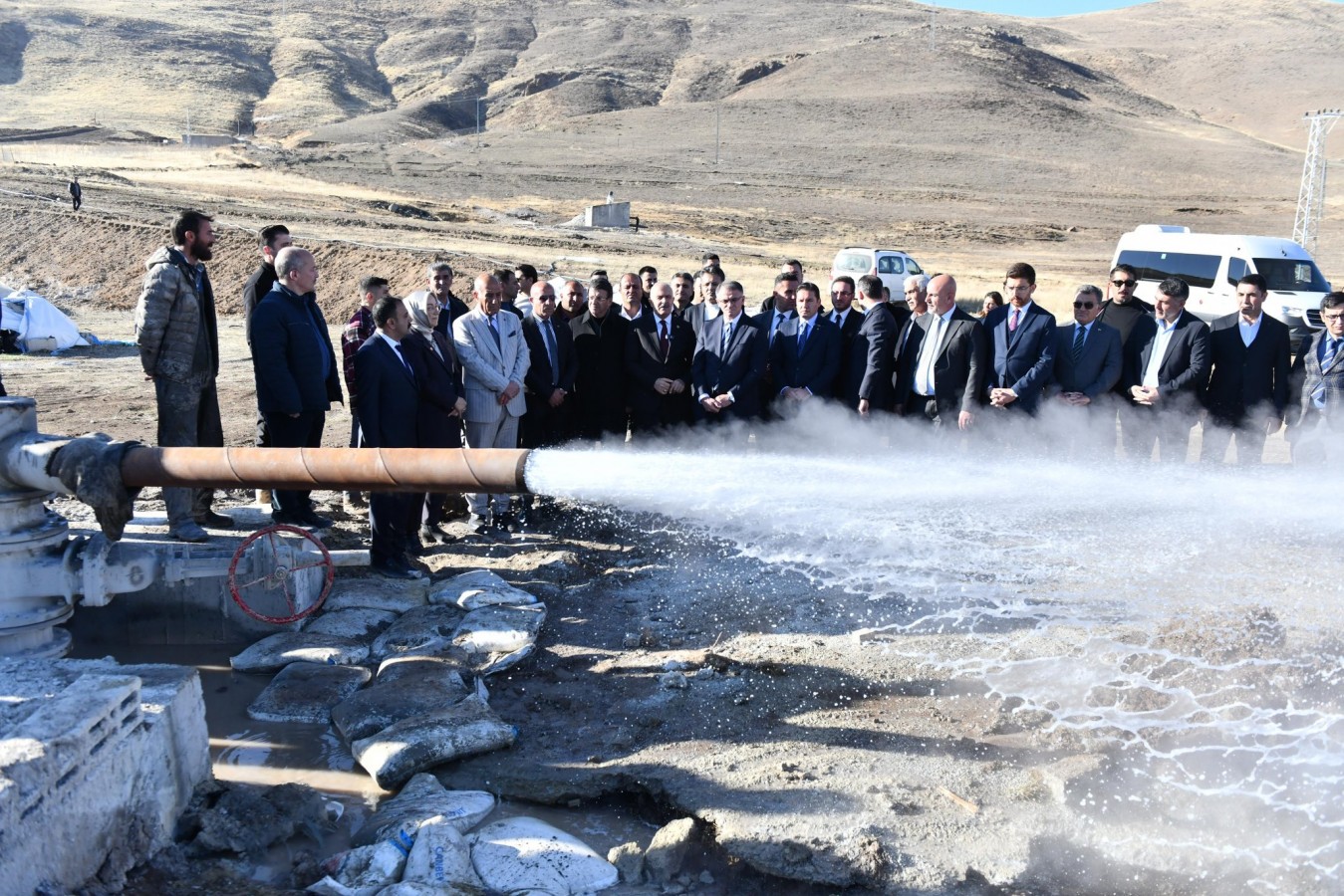 Van Valisi Ozan Balcı, Van milletvekilleri Burhan Kayatürk ve Kayhan Türkmenoğlu ile birlikte Çaldıran ilçesinde kurulacak jeotermal seralar için sondaj çalışmaları sonrası elde edilen termal su kaynağında incelemelerde bulundu.