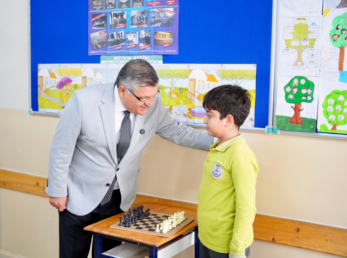 Vali Özarslan, aynı zamanda Türkiye Satranç Federasyonu bünyesinde satranç hakemi de olan sınıf öğretmeni Ömer Tekin’e, çocuklara kazandırdığı satranç sevgisi ve emekleri için teşekkür etti.