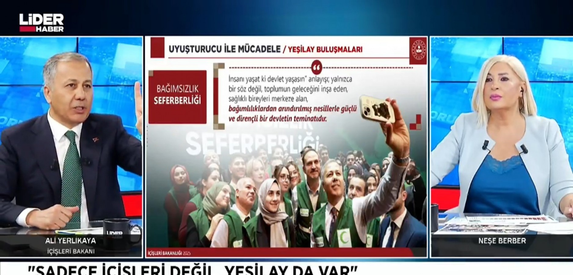İçişleri Bakanı Ali Yerlikaya, Lider Haber TV’de Neşe Berber’in canlı yayın konuğu olarak Türkiye’de uyuşturucuyla mücadelede başlatılan yeni uygulamayı kamuoyuna açıkladı.
