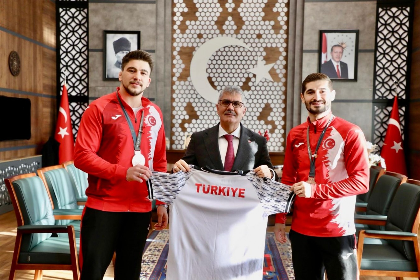 Ulusal ve uluslararası alanda elde ettikleri derecelerle Türk güreşinin öne çıkan isimleri arasında yer alan Niğdeli millî sporcular Ahmet Talha Kacur, grekoromen güreş 87 kilogramda; Kadir Kuş ise grekoromen güreş 67 kilogramda, 16–25 Kasım 2025 tarihleri arasında Japonya’nın Tokyo kentinde düzenlenen Deaflympics Olimpiyat Oyunları’nda kazandıkları bronz madalyaların ardından Vali Cahit Çelik’i makamında ziyaret etti.