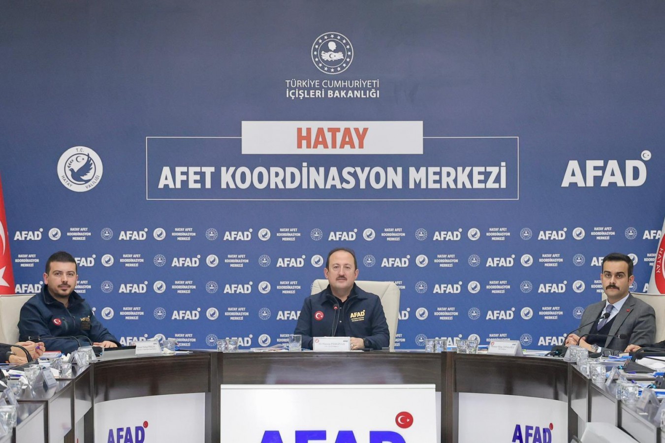 Hatay İl AFAD Müdürlüğü’nde düzenlenen “Değerlendirme ve Koordinasyon Toplantısı'nda, 6 Şubat depremlerinin ardından yürütülen iyileştirme ve yeniden inşa çalışmaları ele alındı. Toplantıya AFAD Başkanı Ali Hamza Pehlivan, Hatay Vali Yardımcısı Mehmet Miraç Topaloğlu ile ilgili kurum temsilcileri katıldı.