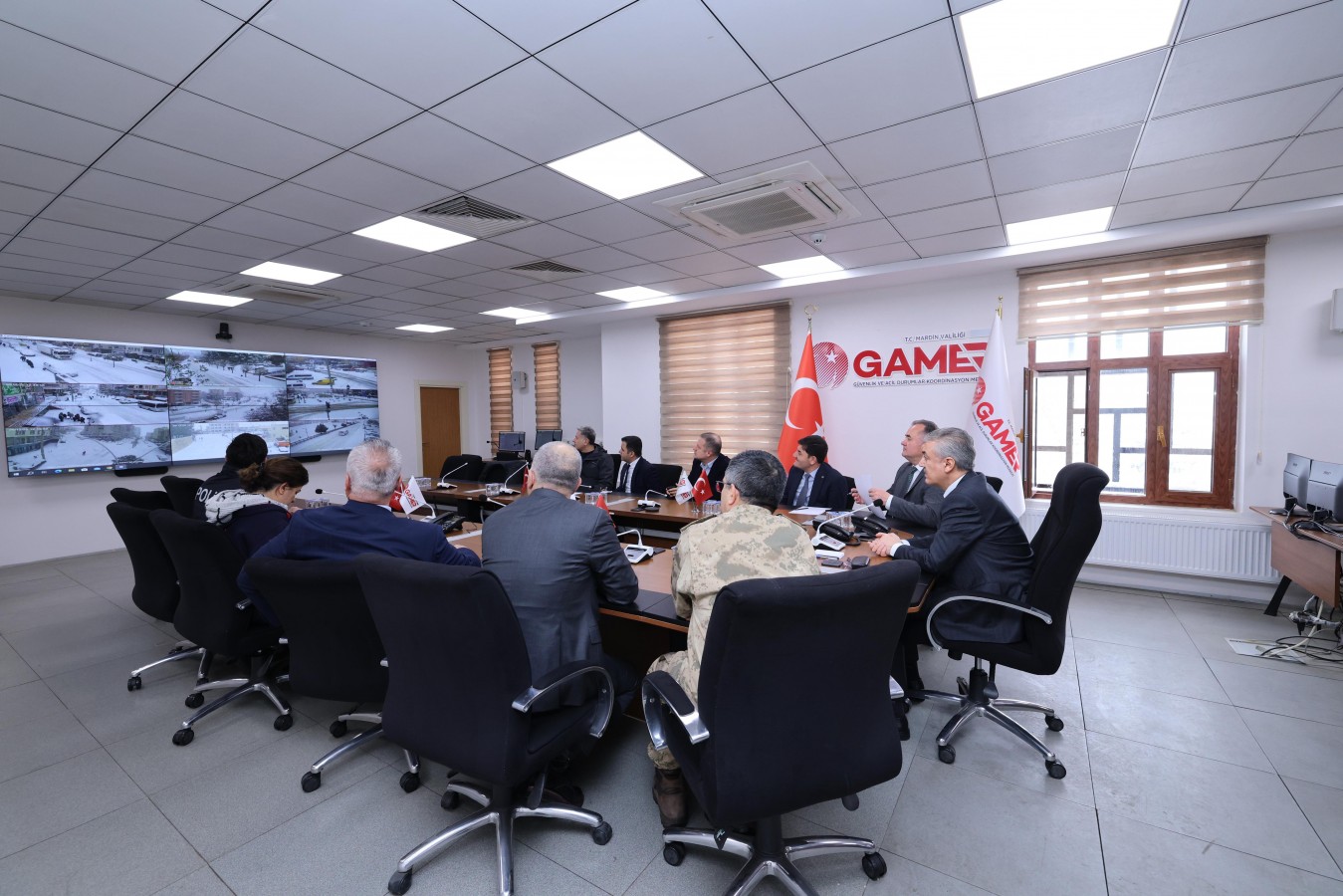 Mardin Valisi ve Büyükşehir Belediye Başkan Vekili Tuncay Akkoyun, il genelinde etkisini sürdüren kar yağışı ve buzlanmaya karşı yürütülen karla mücadele çalışmalarını GAMER Koordinasyon Merkezi'nde yerinde inceleyerek çalışmaları koordine ediyor.