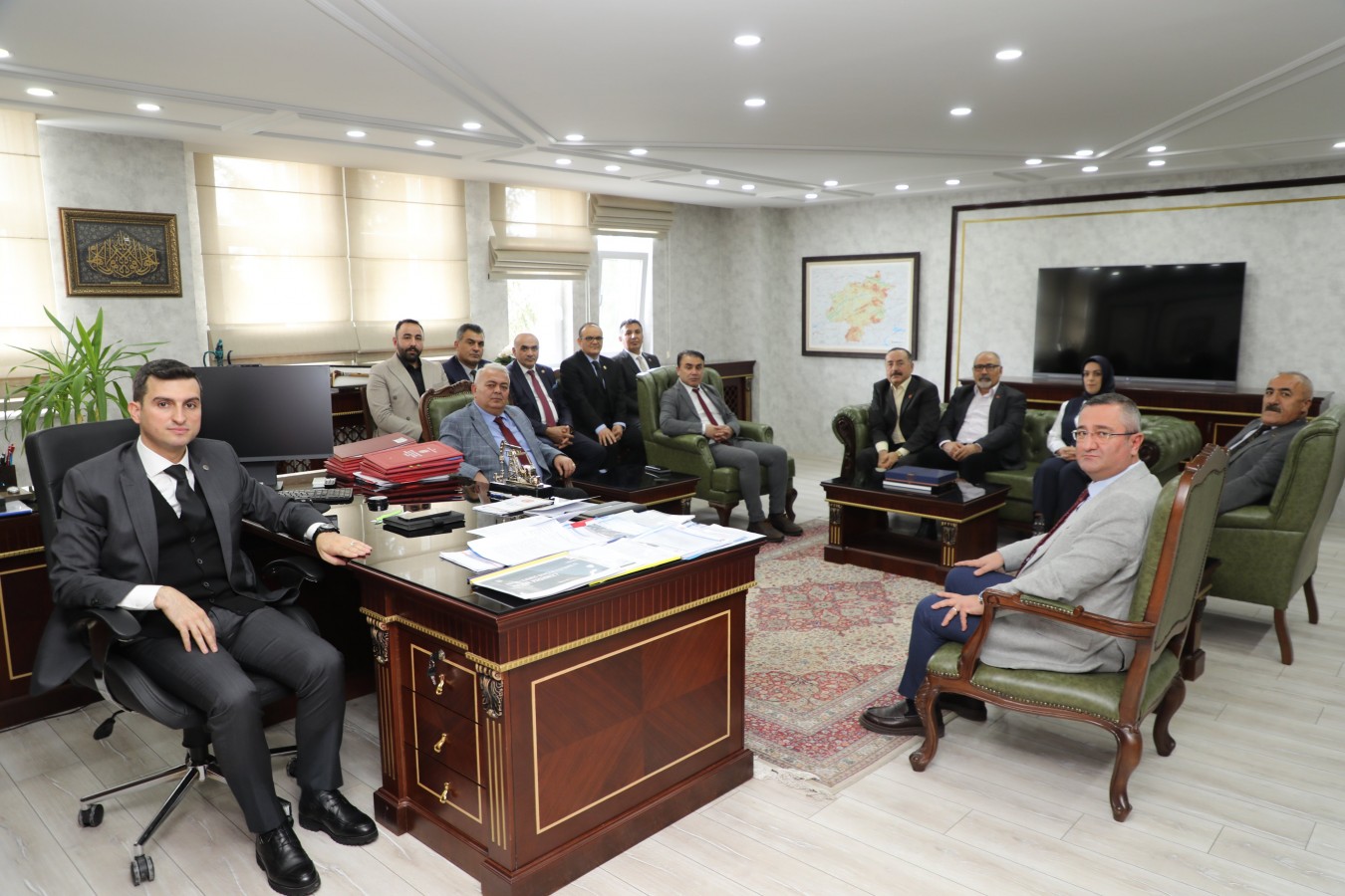 Cumhuriyet Halk Partisi (CHP) İl Başkanı Yılmaz Coşkun, CHP Merkez İlçe Başkanı Ergüder Sümbüloğlu, yönetim kurulu üyeleri ve CHP İl Genel Meclisi üyeleri, Vali Yardımcısı ve ve İl Özel İdaresi Genel Sekreteri Halil İbrahim Yeşilyurt’u makamında ziyaret etti.