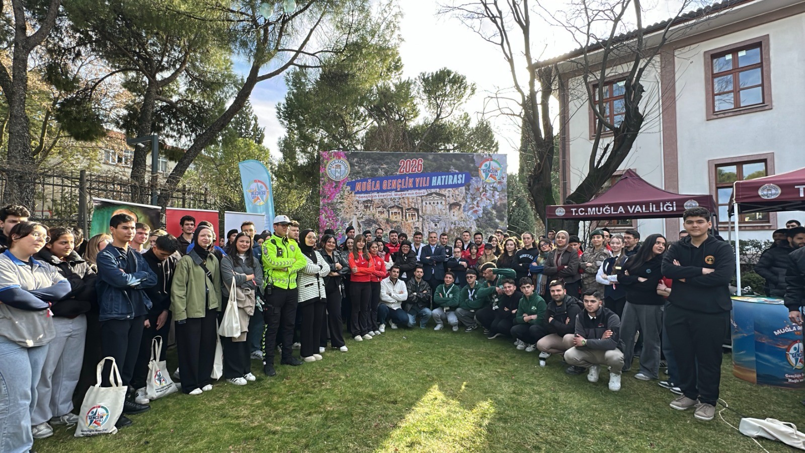 Muğla Valisi Dr. İdris Akbıyık’ın koordinesinde hayata geçirilen “2026 Muğla Gençlik Yılı”nın lansmanı gerçekleştirildi. Muğla Valiliği bahçesinde düzenlenen programa; Muğla’da eğitim gören lise ve üniversite öğrencileri, sporcular, vali yardımcıları, kaymakamlar, kurum müdürleri, sivil toplum kuruluşu temsilcileri ve çok sayıda vatandaş katıldı.