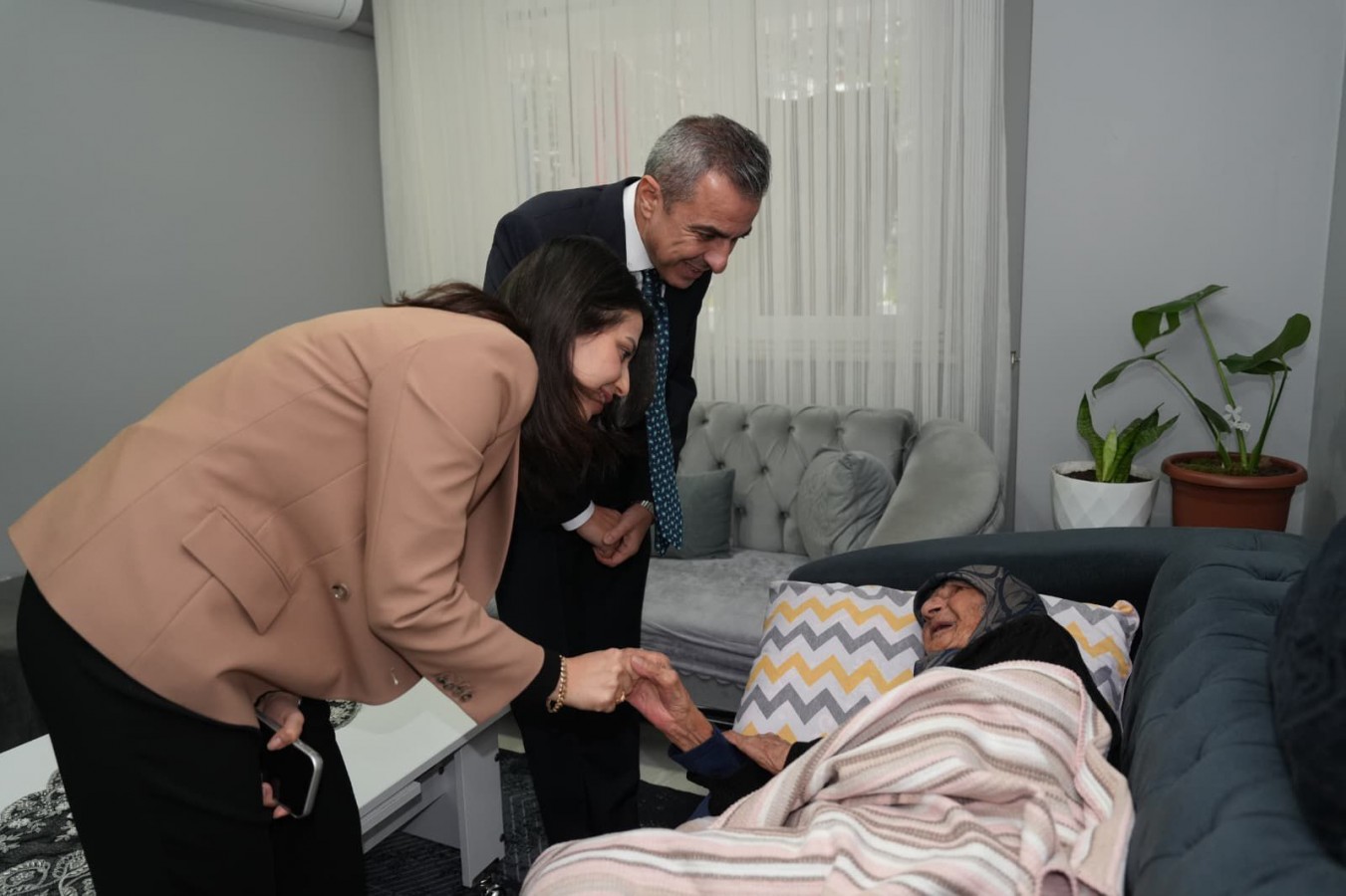 Beyoğlu Kaymakamı Abdullah Atakan Atasoy ve eşi Özge Atasoy, Ailemiz İstanbul Projesi kapsamında, ilçede yaşayan 100 yaşındaki Rahime Gün ile 99 yaşındaki Meryem Köse teyzeleri evlerinde ziyaret etti.