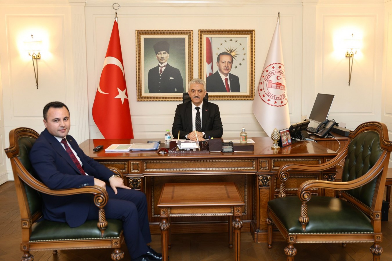 Düzce Valisi Mehmet Makas, İçişleri Bakanlığı görevlendirmesiyle Akçakoca Kaymakamlığına atanan Hacı Arslan Uzan’ı kabul etti. Vali Makas, Kaymakam Uzan’a görevinin hayırlı olmasını temenni etti.