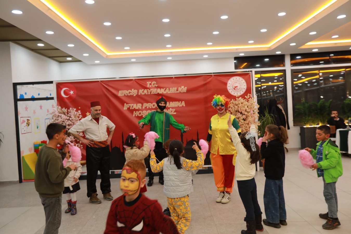 Erciş Kaymakamlığı himayelerinde Dünya Yetimler Günü vesilesiyle düzenlenen iftar programına; Kaymakam Murat Karaloğlu, eşi Gamze Karaloğlu, Erciş Ticaret Odası Başkanı Murat İzgi, daire amirleri, misafir aileler ile birlikte ebeveyn kaybı yaşayan çocuklar katıldı.