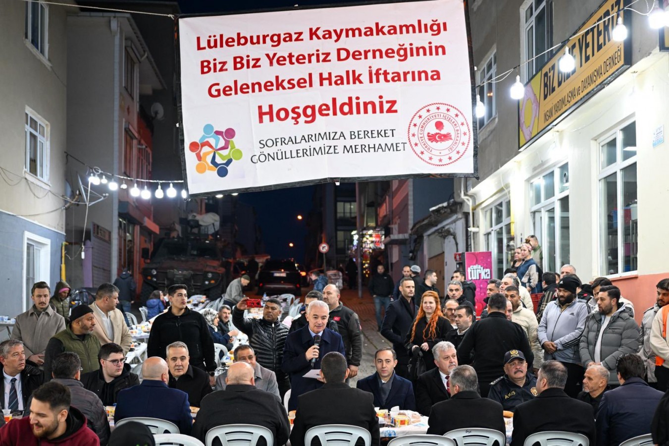 Kırklareli Valisi Uğur Turan, Valilik himayelerinde Biz Bize Yeteriz Derneği Lüleburgaz Şubesi Aşevi’nde hazırlanan bereket sofrası iftar programında Roman vatandaşlarla bir araya geldi. Vali Turan; Lüleburgaz Kaymakamı Kemal Yıldız, Lüleburgaz Belediye Başkanı Dr. Murat Gerenli, İl ve İlçe Protokolü, Kırklareli Valiliği Roman Koordinatörü Kasım Ant, Biz Bize Yeteriz Derneği Lüleburgaz Şube Başkanı Emin Sanpur, dernek yöneticileri ve gönüllüler ile birlikte mahalle sakinlerinin de katılımıyla oruçlarını açtı.