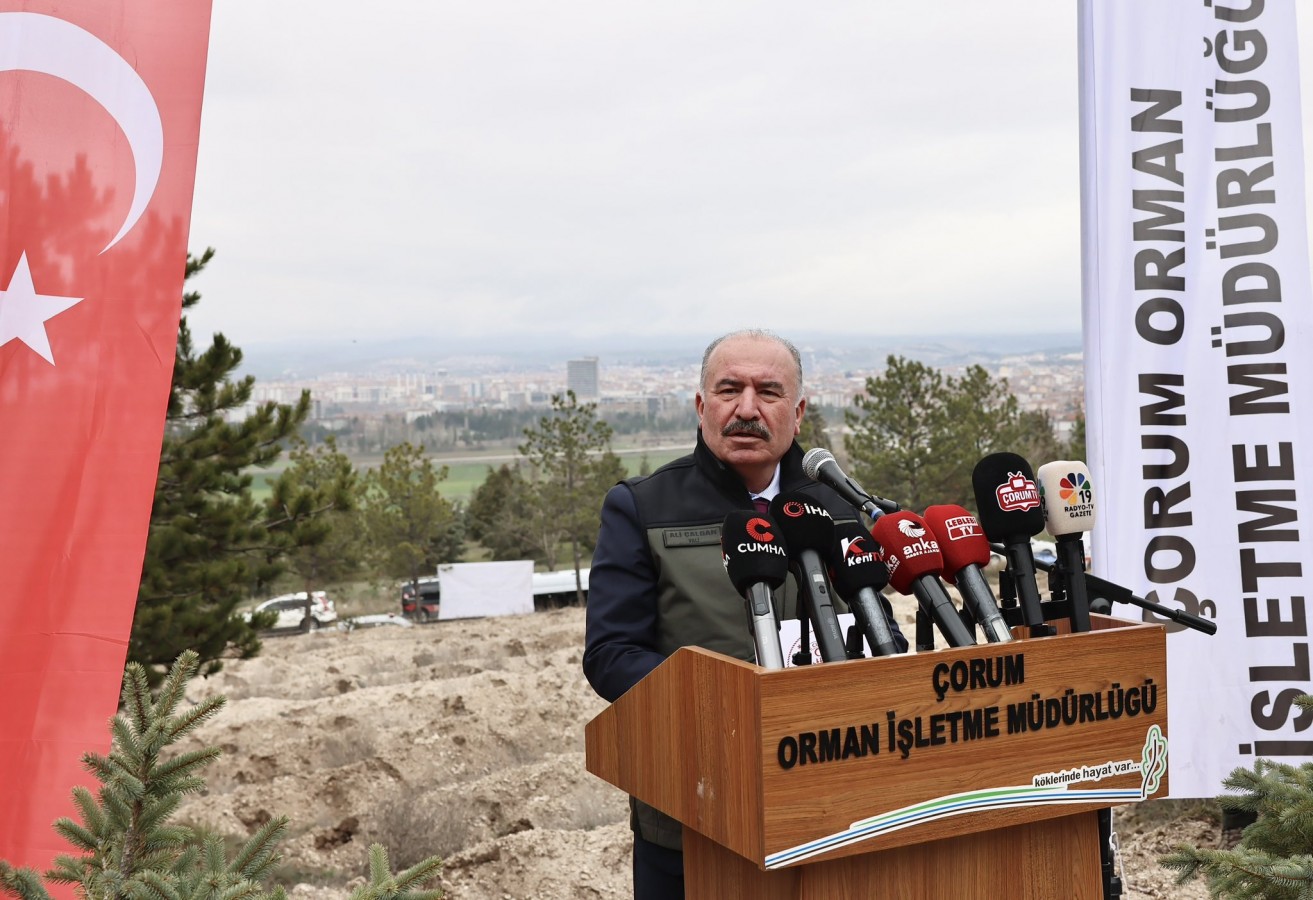 Çorum'un, 2019 yılında Guinness Rekoru kırdığını hatırlatan Vali Çalgan, "1 saatte 303 bin 150 fidan dikmiş, bu başarı hâlâ Çorum'un ve ülkemizin gurur kaynağıdır. Çorum’un toplam yüzölçümünün yüzde 38’i ormanlarla kaplıdır. Bu oran, ilimizin sahip olduğu güçlü doğal varlığın göstergesidir. Ancak biz bununla yetinmiyor, geleceğe daha yeşil bir Çorum bırakmak için çalışmaya devam ediyoruz. Doğanın kıymetini bilmek yalnızca bugünün değil, her günün sorumluluğudur. Bugün dikilen her fidan, yarın nefes aldığımız havaya, içtiğimiz suya ve çocuklarımızın umut dolu geleceğine dönüşecektir. Bu anlamlı etkinliğe katılan öğrencilerimize, gençlerimize, sivil toplum kuruluşlarımıza ve kamu kurumlarımıza gönülden teşekkür ediyorum. Fidan dikme etkinliğimizin ülkemize, milletimize ve doğaya hayırlı olmasını diliyorum” ifadelerini kullandı.