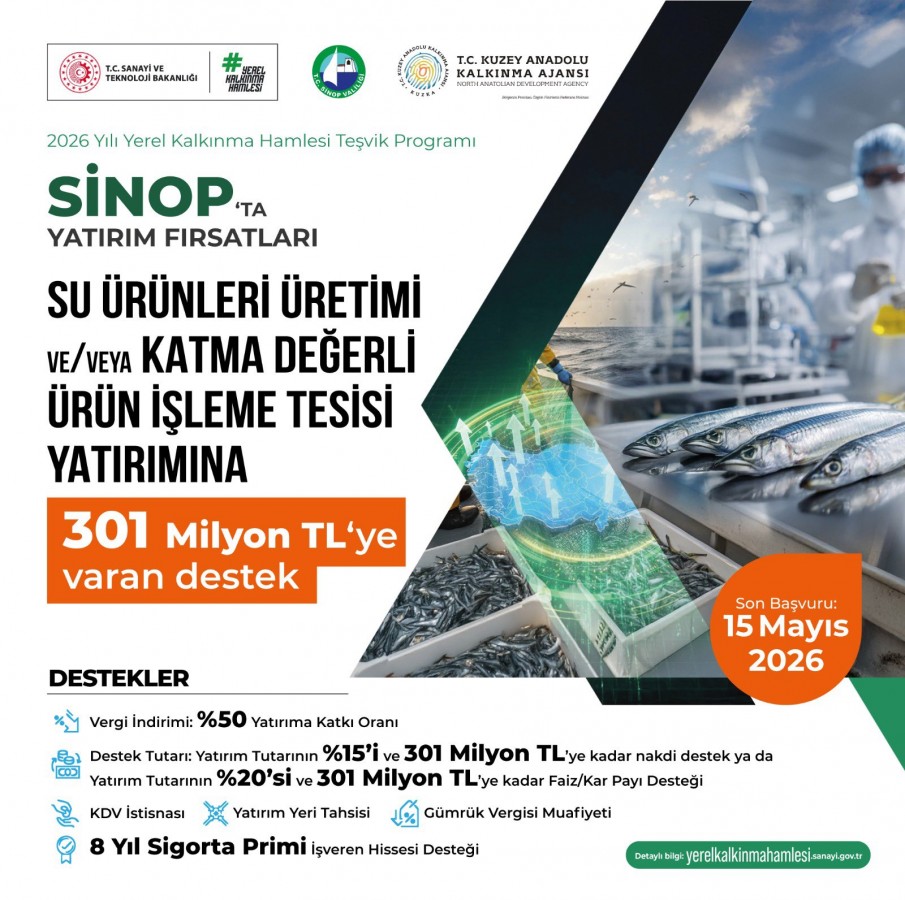 Vali Özarslan, "Değerli girişimcilerimiz! Sinop'umuza, ilçelerimize ve köylerimize sizleri yatırım yapmaya bekliyoruz. Hayallerinin ve planların gerçekleşmesi yolculuğunda ilimize yatırım yapacak girişimcilerimize ve yatırımcılarımıza şimdiden çok teşekkür ediyorum. Sanayi ve Teknoloji Bakanlığımızın hayata geçirdiği Yerel Kalkınma Hamlesi Teşvik Programında 2026 yılında Sinop'ta yapılacak yatırım alanlarına 301 milyon TL'ye varan teşvik ve destek verilecek" şeklinde konuştu.
