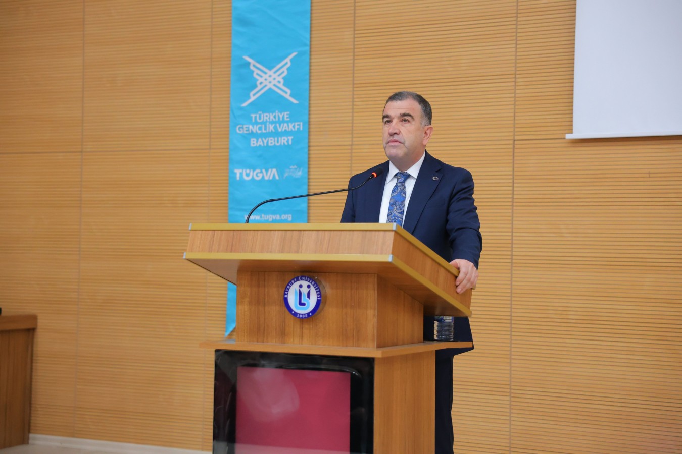 Bayburt Valisi Mustafa Eldivan, Türkiye Gençlik Vakfı Bayburt İl Temsilciliği tarafından düzenlenen “İhtisas Akademi 2026” programı kapsamında gerçekleştirilen “Yeni Dünya Ekonomisi ve Türkiye” başlıklı konferansa katıldı.