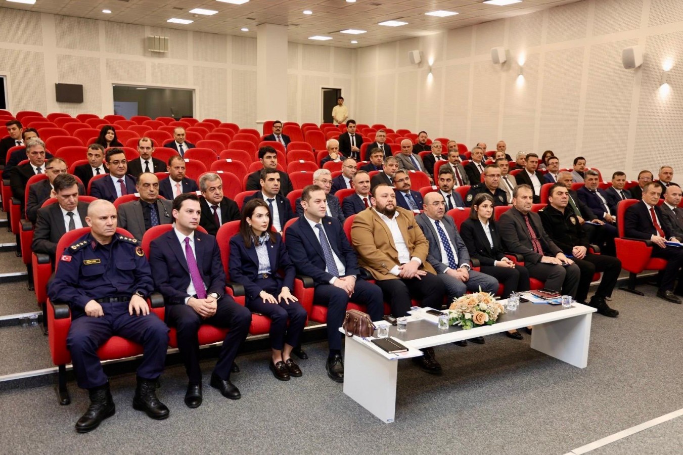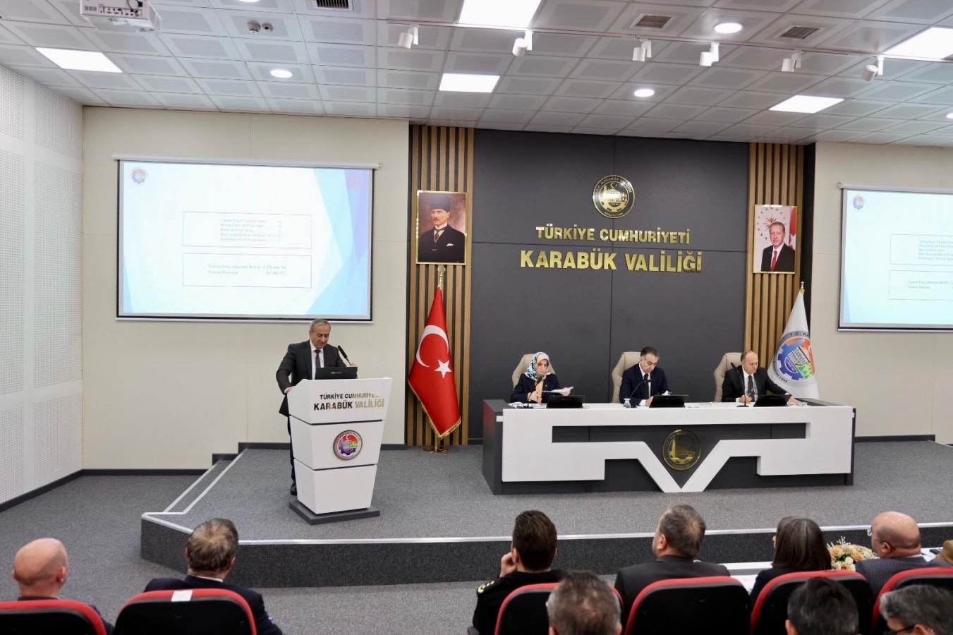 Kamu kurumlarının yatırımlarını izlemek, çalışmaları eşgüdüm içerisinde yürütmek ve il düzeyindeki projelerin daha etkin şekilde hayata geçirilmesini sağlamak amacıyla düzenlenen toplantı, Karabük Valiliği 3 Nisan Konferans Salonu’nda düzenlendi. Toplantıya; Vali Yardımcısı Erol Özkan, ilçe kaymakamları, ilçe belediye başkanları, yatırımcı kuruluşların bölge ve il müdürleri ile kamu kurum ve kuruluşlarının temsilcileri katıldı.