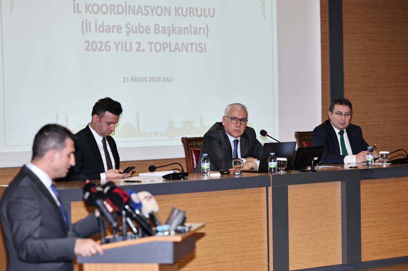 Sivas Valisi Yılmaz Şimşek'in başkanlığında İl Koordinasyon Kurulu 2026 Yılı 2. Toplantısı ve İl İdare Şube Başkanları Toplantısı, Sivas Valiliği Ek Hizmet Binası Konferans Salonu’nda gerçekleştirildi. Toplantıda, il genelindeki kamu yatırımlarının son durumu değerlendirildi. Kurumlar arası iş birliği ve koordinasyon gerektiren konular kurul üyeleriyle birlikte masaya yatırıldı.