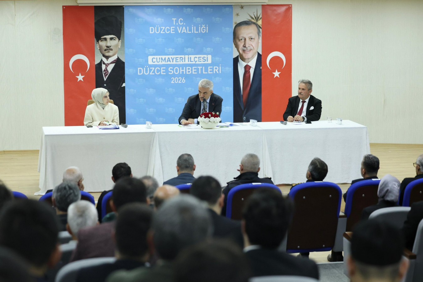 Vali Makas, "İnsanı yaşat ki devlet yaşasın" şiarını her zaman kendilerine rehber edineceklerini belirterek, vatandaş odaklı kamu yönetimi anlayışıyla vatandaşların duasına talip olduklarını kaydetti. Vali Makas, "Düzce Sohbetlerine Cumayeri ilçemizde devam ettik. Türkiye Yüzyılı'nda hedeflerimiz ve yapılan çalışmalar, planlanan yatırımlar ve yarınlarımızı konuştuk, hasbihal ettik. Türkiye Yüzyılında iç tahkimatımızın daha da arttığı, kardeşlik hukukumuzun daha da güçlendiği, dünyaya adalet ve merhameti yayan, nizam veren bir ülke olacağımıza dair inancımız tamdır. Tarih yeniden aziz milletimizi ve yüce devletimizi çağırıyor, insanlığın yeniden dirilişi için ve son kaleden tekrar cihana adalet, huzur, sevgi dağıtılsın diye" şeklinde konuştu.
