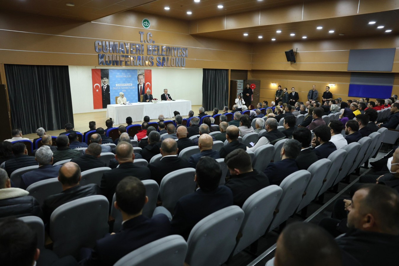 Vatandaşların sorunlarını yerinde görmek ve çözümler üretmek için kentte uygulamaya başlanılan “Düzce Sohbetleri” projesinin beşinci toplantısı Cumayeri ilçesinde düzenlendi. İlçede gerçekleştirdiği ziyaretlerin ardından Cumayeri Belediyesi Konferans Salonunda il müdürleri ve kurum amirlerinin katılımıyla yapılan toplantıda konuşan Vali Mehmet Makas, kentin kalkınması adına ilçede yapılması gerekenleri, giderilmesi gereken sorunları ortak akıl yoluyla ele alarak değerlendirdiklerini aktardı.