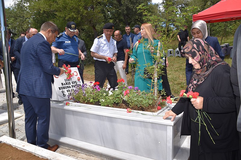 Kardeşleri Erdem ve Serpil Efe ile protokol üyeleri tarafından Şehit Barış