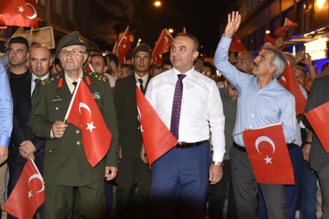 binlerce vatandaşın katıldığı kortej yürüyüşü mehter takımı eşliğinde yapıldı.