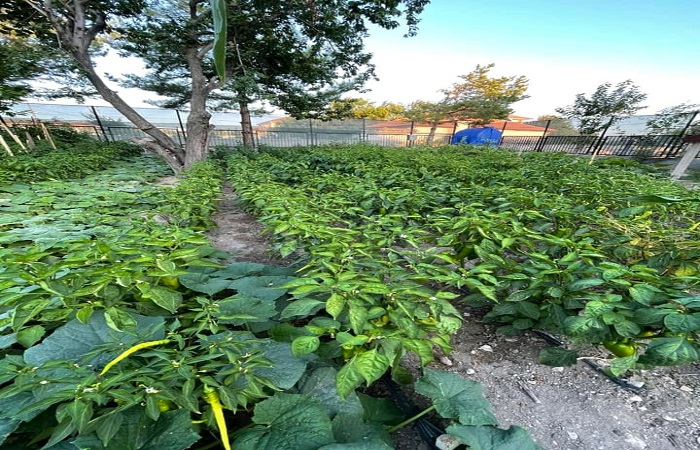 ürünlerin yetiştirildiği bir bahçe kurduk. Damlama sulama sistemi kurarak hem