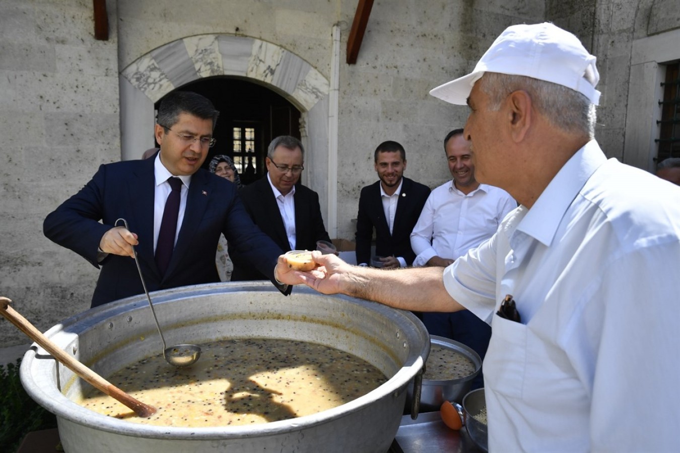 Edirne Valisi H. Kürşat Kırbıyık, Trakya Üniversitesi tarafından Beyazıt Külliyesi İmarethanesinde düzenlenen aşure etkinliğine katıldı. Aşure dağıtımı öncesi etkinliğe katılanlarla kazanın başında dua edildi....