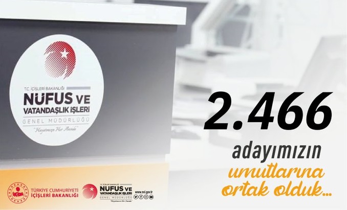 İçişleri Bakanlığı Nüfus ve Vatandaşlık İşleri Genel Müdürü Şefik Aygöl, Kamu Personeli Seçme Sınavı (KPSS) için açık bulundurulan nüfus müdürlüklerinde 2 bin 466 adayının T.C. Kimlik Kartı başvurusunun alındığını belirterek, pazar günü gençlerin umutlarına ortak olan mesai arkadaşlarını tebrik etti....