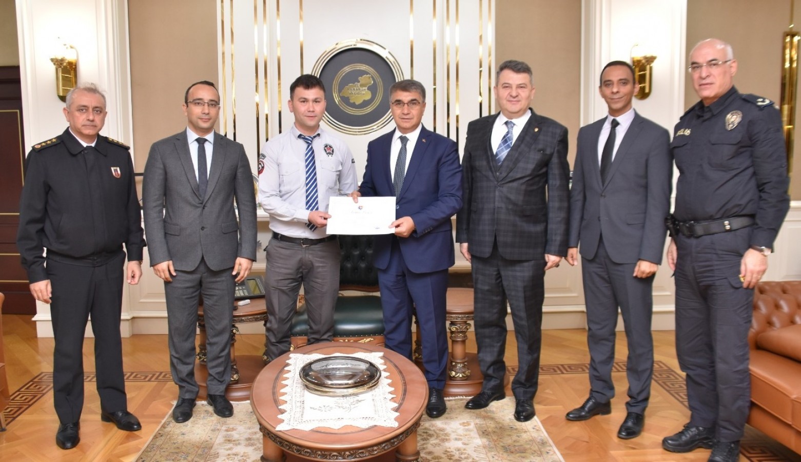 Karabük Valisi Fuat Gürel, oto yıkamacı İlhan Ercan'ı dolandırılmaktan son anda kurtaran güvenlik görevlisini ‘Teşekkür Belgesi’ ile ödüllendirdi....