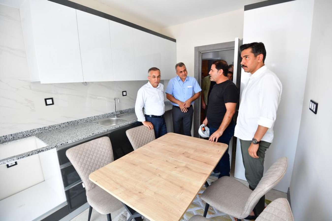 Vali Çeber ve heyet, kalıcı konutlardaki örnek daireyi de
