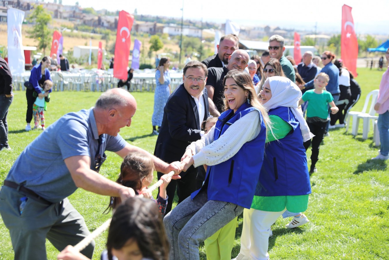 çocuklarla doyasıya eğlendi. Etkinlikte halat çekme, koşu, çuval yarışı gibi